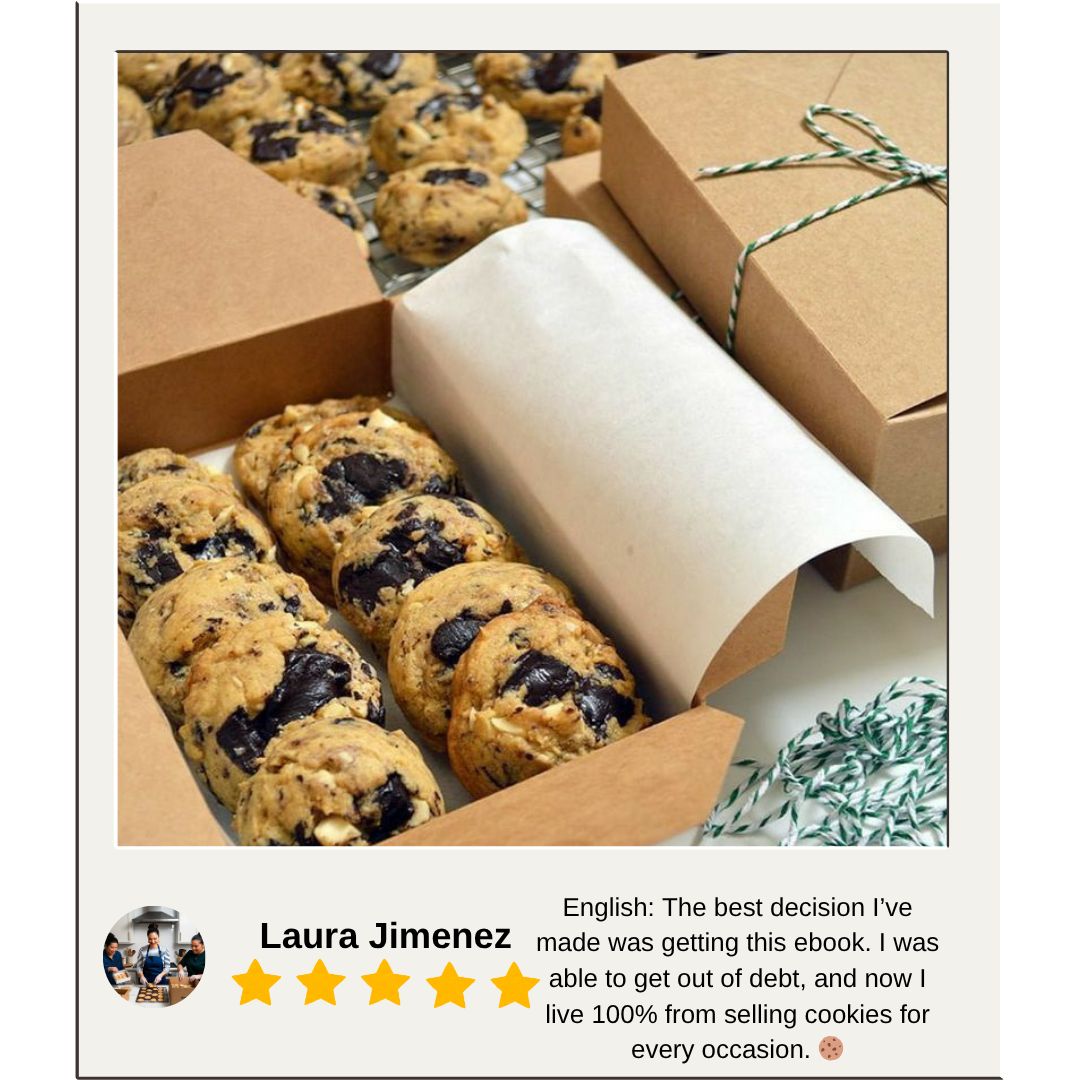 💰 It’s a practical step-by-step guide that teaches you how to price your cookies, organize production, find customers, and sell cookies daily from home.